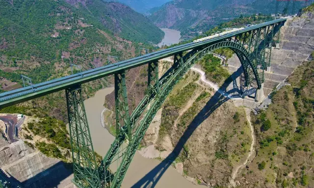 Part of the ambitious Udhampur-Srinagar-Baramulla Rail Link (USBRL) project, the Chenab Bridge is the highest railway arch bridge in the world. Soaring 359 metres above the riverbed, it spans the Chenab River near the Salal Dam and stretches a total length of 1,315 metres. Its main steel arch alone measures 467 metres and is built to withstand wind speeds up to 266 kilometres per hour.
