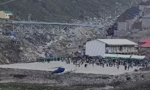 The chopper was supposed to land at its designated place but it could not do so due to technical reasons leaving passengers and the ground handling staff in a tense situation. The pilot then tactfully handled the situation and ensured that the chopper landed safely in an open place at over 100 metres distance away from the helipad without causing any problem to devotees.