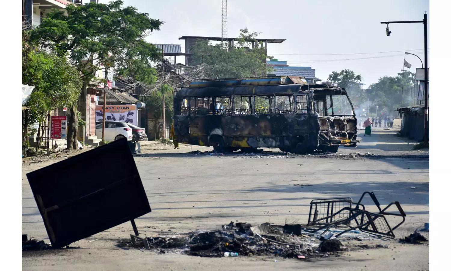 Defying prohibitory orders, demonstrators torched a police post in Yairipok, burned tyres, and dug up roads to hinder security movement. Security forces responded with tear gas shells, leaving at least 11 people injured. A bus belonging to central forces was also set on fire in Imphal East district.