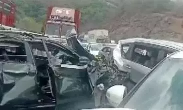 After an 11-vehicle collision, a massive fire broke out in 10 of the vehicles. At least 14 fire tenders brought the fire under control after several hours
