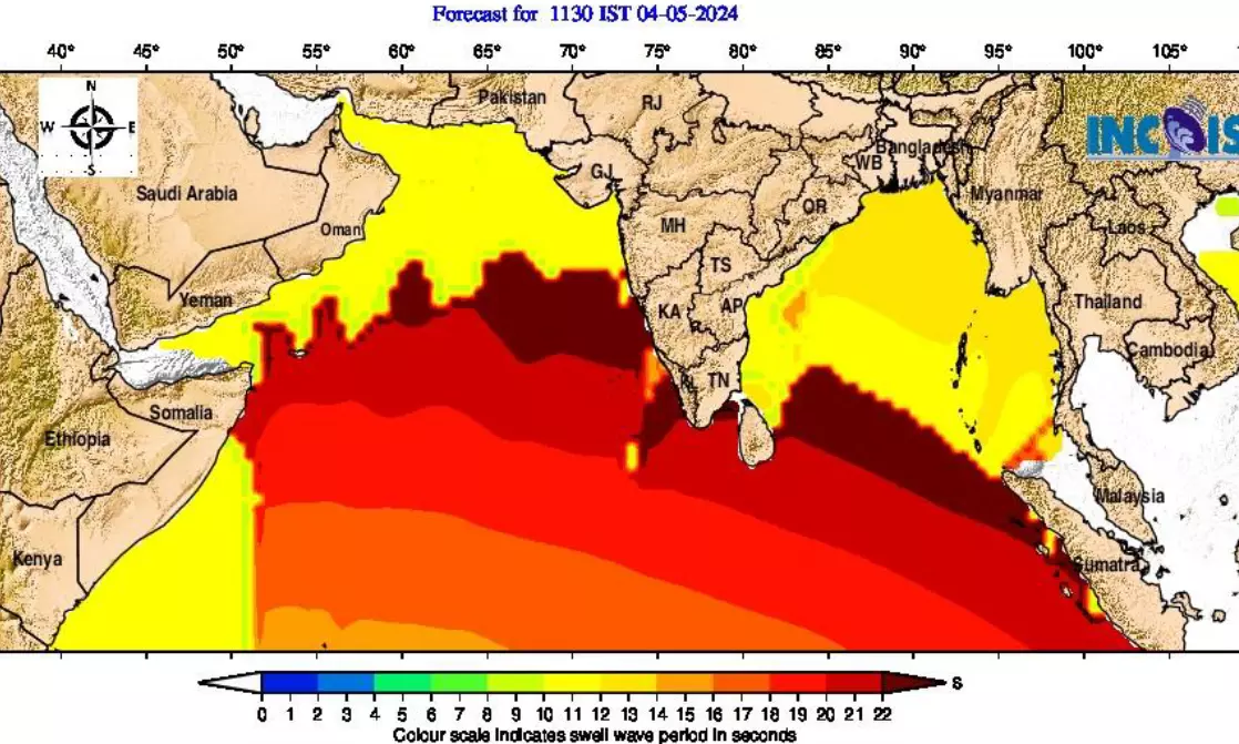 According to Nagaraja Kumar, scientist and head of the operational ocean cervices division of Incois, the surge swell began some 10,000 kilometres away somewhere in the Atlantic Ocean on April 26 and its first impact is likely to be felt on the southern tip of India sometime late on Thursday night or early hours of Friday.
