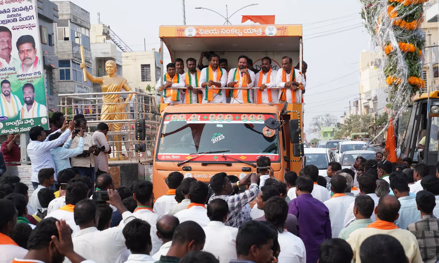 Addressing a road show in Toopran, Medak district, as part of Vijay Sankalp Yatra, Reddy said that people in villages were not ready to accept the Congress government’s dilly-dallying approach in implementing poll promises nor their ‘empty coffers’ pretext.
