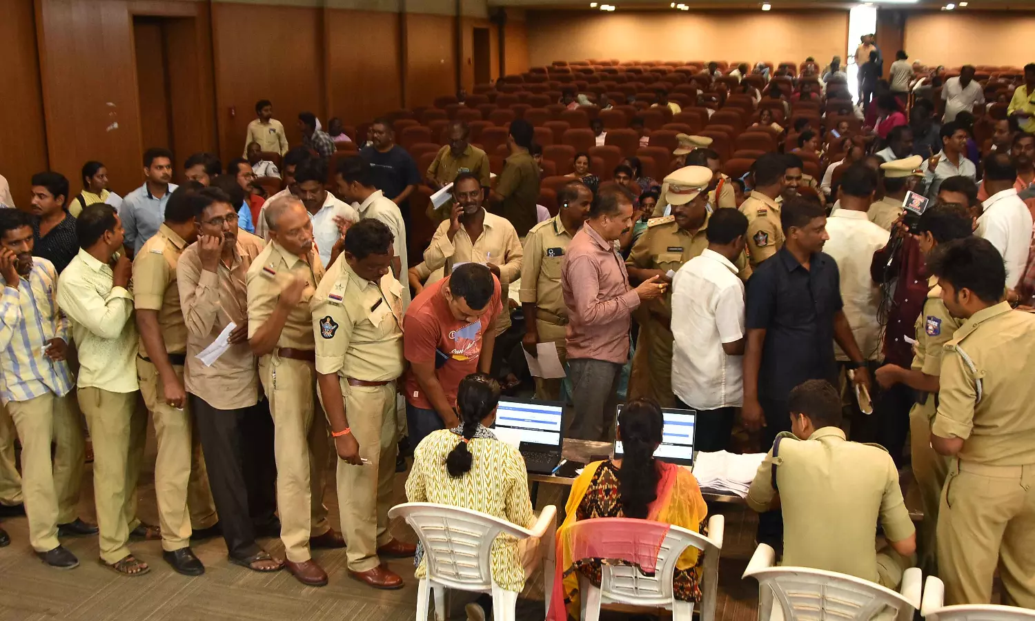 A large number of government staff turned up at the NTR district sub-collectorate office, Tummalapalli Kalakshetram and other places to exercise their franchise.