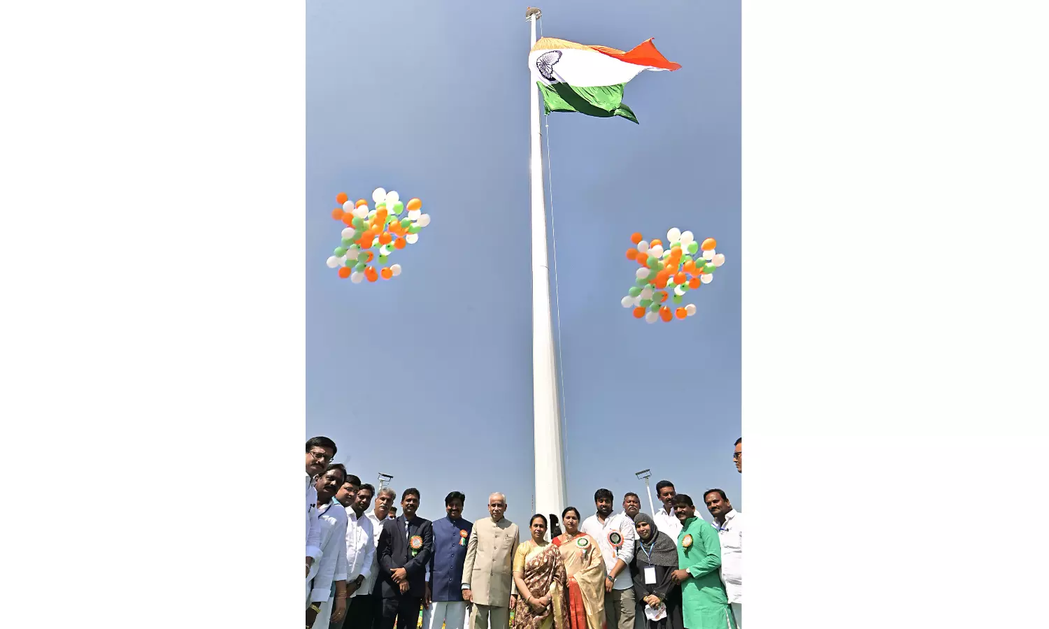 Vijayawada MP Kesineni Srinivas, Samineni Udaya Bhanu, MLC Dr. M. Arun Kumar, Jaggaiahpet municipality chairman R. Raghavendra, NTR district collector S. Dilli Rao and G.V.N. Narasimham, grandson of Pingali Venkayya were among those who attended the flag-hoisting programme.
