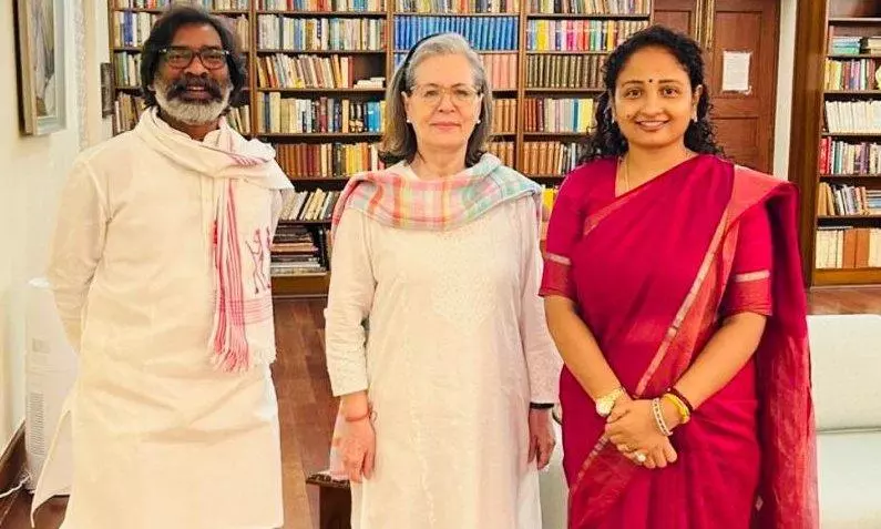 New Delhi: Jharkhand Chief Minister Hemant Soren and his wife Kalpana Soren met Congress leader Sonia Gandhi and Sunita Kejriwal, the wife of jailed Delhi Chief Minister Arvind Kejriwal, separately on Saturday.