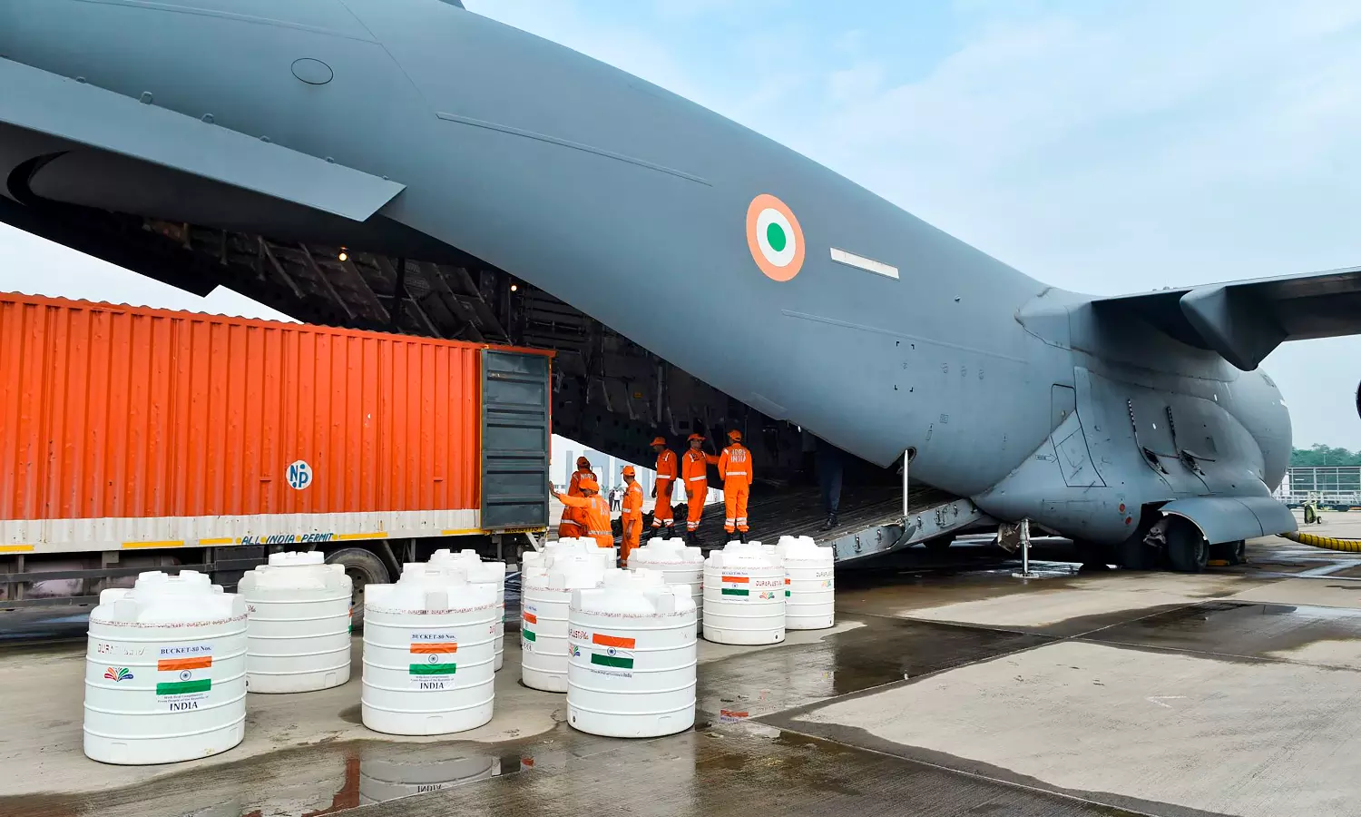 A C-17 military transport aircraft of the Indian Air Force transported 10 tonnes of relief materials to Laos, while 35 tonnes of aid is being sent to Vietnam.