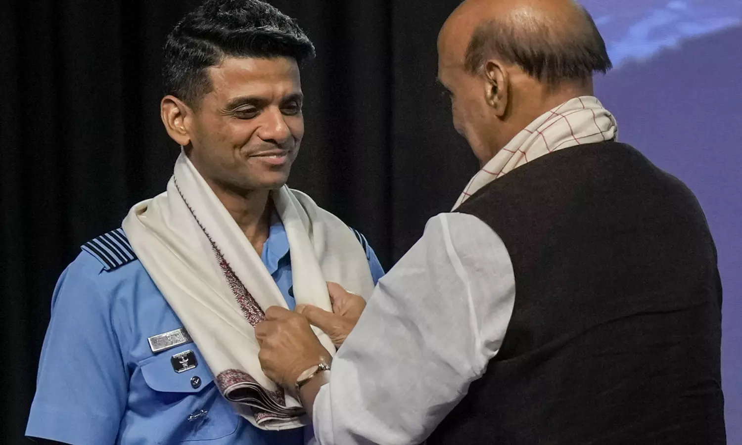 Defence Minister Rajnath Singh felicitated Group Captain Shubhanshu Shukla and his other colleagues, Group Captain P V Nair, Group Captain Ajit Krishnan, and Group Captain Angad Pratap. Chief of Defence Staff General Anil Chauhan and Air Force Chief Air Marshal AP Singh were also present at the event.