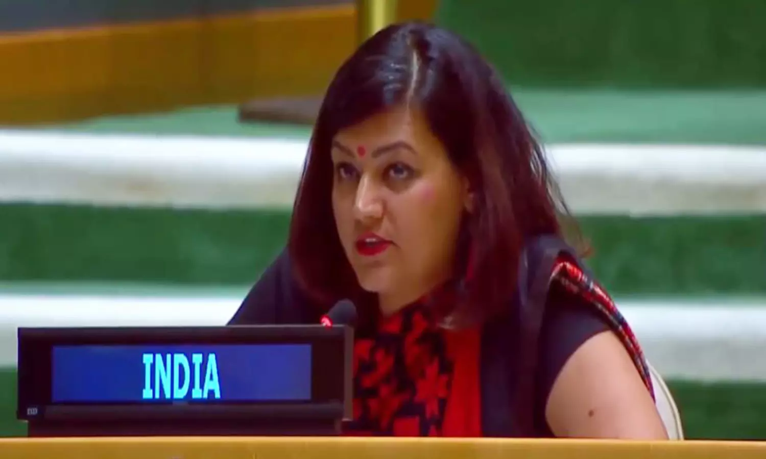 "This Assembly witnessed absurd theatrics in the morning from the prime minister of Pakistan, who once again glorified terrorism that is so central to their foreign policy," Gahlot said, delivering India's Right of Reply at the UNGA.