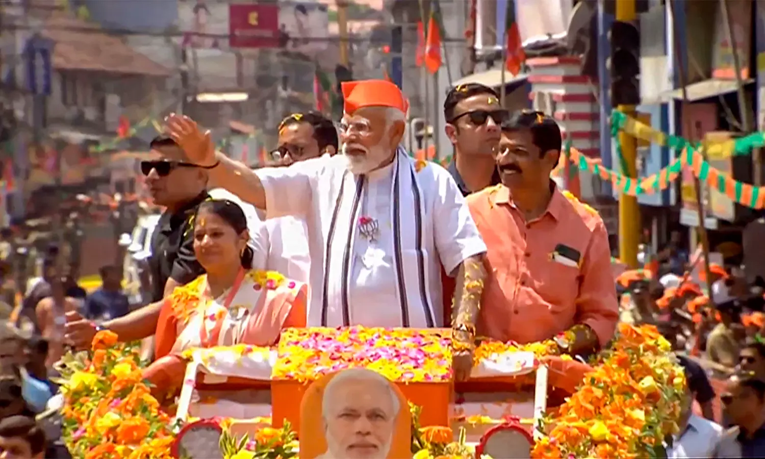 On the open-roof vehicle, Modi was flanked by BJP state president K Surendran and NDA candidates C Krishnakumar, who is contesting from the Palakkad constituency and Niveditha Subramanian, who has been fielded in the Ponnani seat.