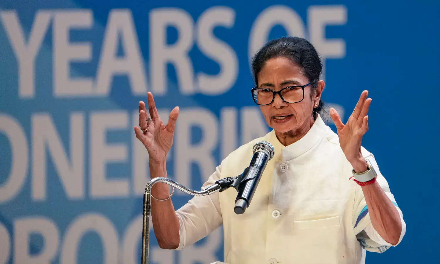 Her move was aimed at protesting the BJP-led Centre’s step to rename the Mahatma Gandhi National Rural Employment Guarantee Act (MGNREGA) as the Viksit Bharat–Guarantee For Rozgar And Ajeevika Mission (Gramin) (VB-G RAM G).