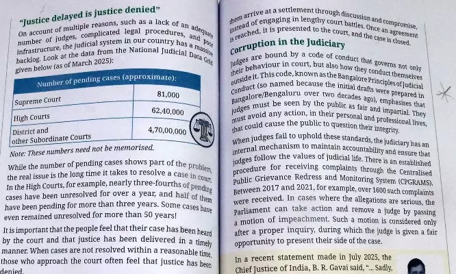 The textbook also quotes former Chief Justice of India B R Gavai, who in July 2025 said that instances of corruption and misconduct within the judiciary had a negative impact on public confidence.