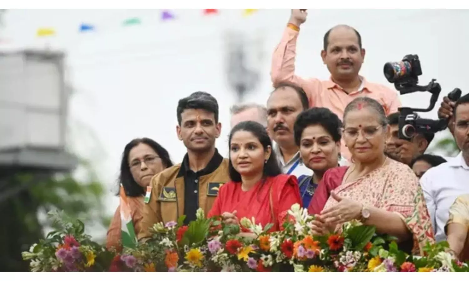 Shukla, the second Indian to reach space, received a grand welcome from students during a road show in Uttar Pradesh's Lucknow on Monday. Students welcomed Group Captain Shukla to his hometown in Lucknow by waving the tricolour