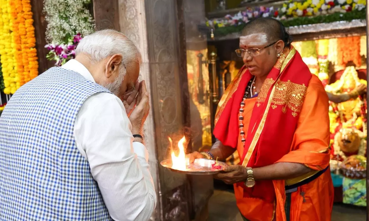 PM Modi prays at Ujjaini Mahakali Temple in Hyderabad