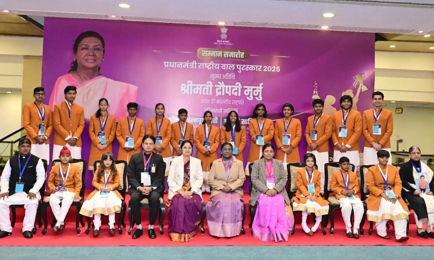 New Delhi: President Droupadi Murmu conferred the Pradhan Mantri Rashtriya Bal Puraskar on children for their exceptional achievements in the fields of Bravery, Social Service, Environment, Sports, Art & Culture and Science & Technology at a ceremony held in New Delhi on Friday.