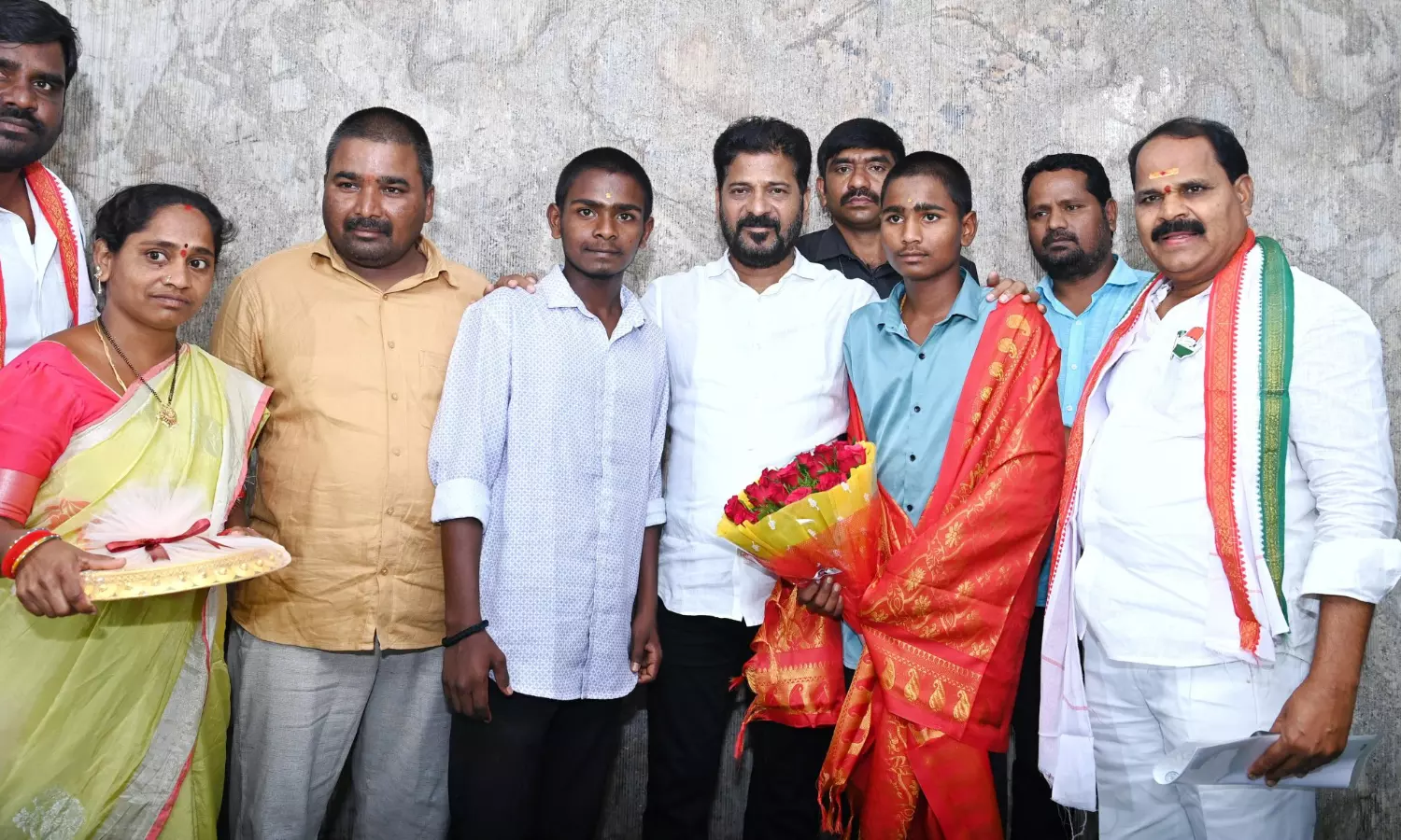 Revanth Felicitates 15-Year Old Sai Charan Who Saved Lives in Shadnagar Fire Accident