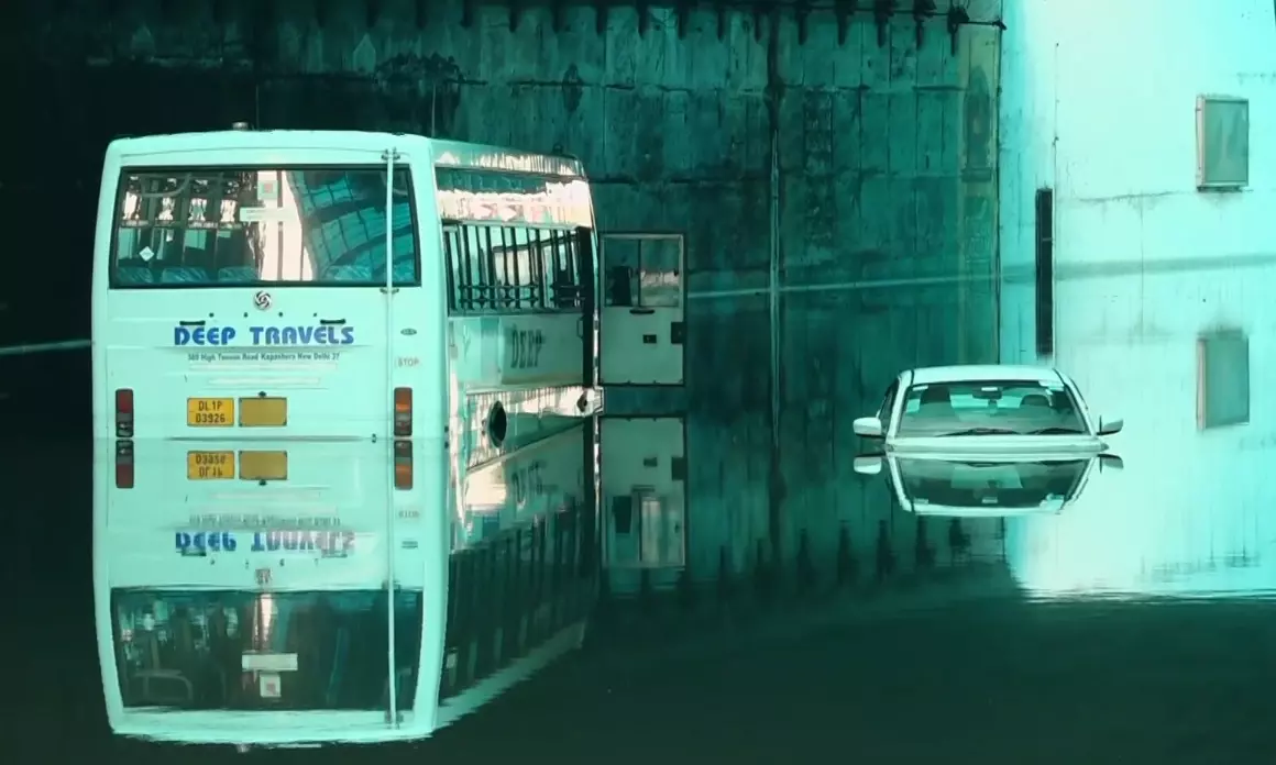 New Delhi: Heavy rain accompanied by strong winds hit Delhi in the early hours of Sunday, disrupting the common life of the national capital. Several streets were waterlogged, leading to traffic congestion. The visuals from Delhi Cantt showed a bus and a vehicle submerged in the water at a waterlogged underpass, demonstrating the severity of the rainfall.