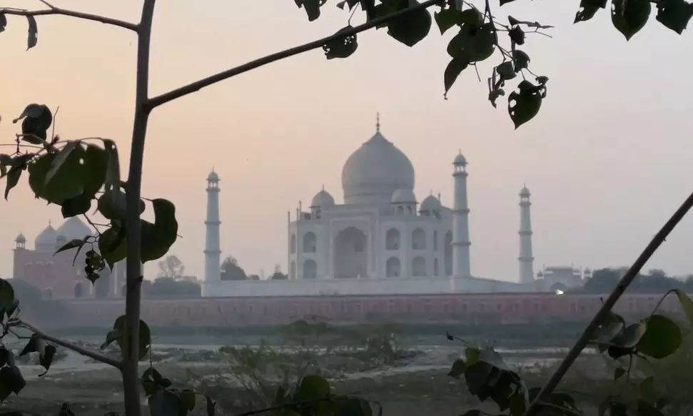 As the fog clears, the Taj Mahal in Agra continues to offer an iconic view.
