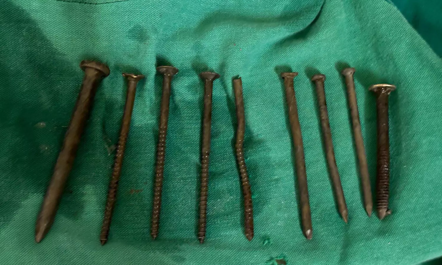 The gastroenterology department headed by Professor Shravan Kumar examined the patient and carried out an operation through endoscopy. It took 45 minutes for the doctors to remove nine iron nails from the patient’s stomach. Shaik informed doctors that he consumed 16 nails on various occasions but doctors managed to remove only nine.