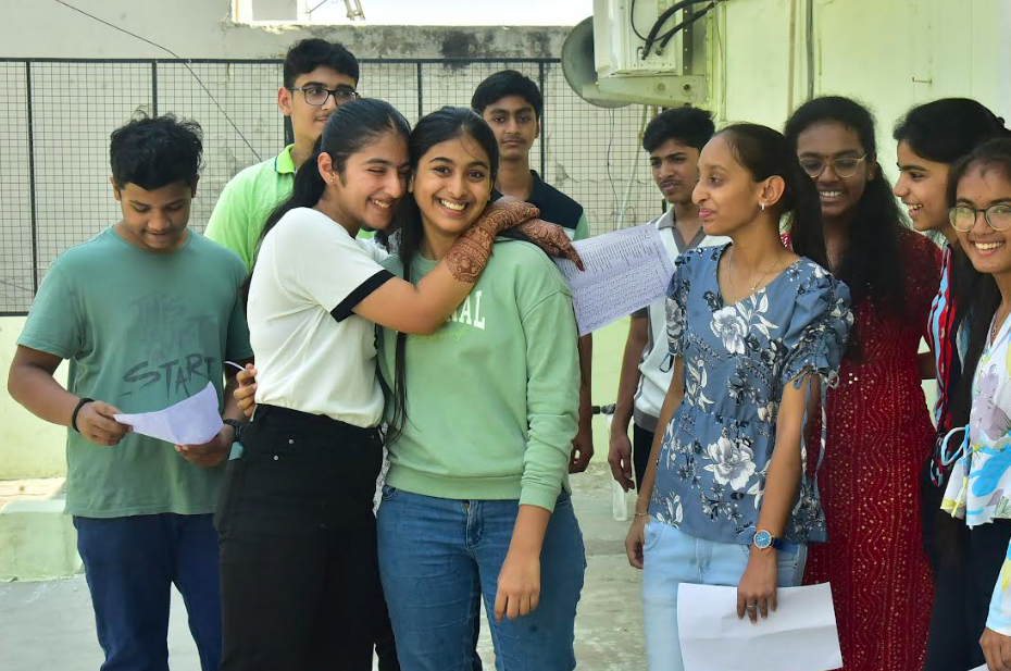 Class 10th merit students celebrate their accomplishments at Manikonda on Tuesday. Image credit: R. Pavan