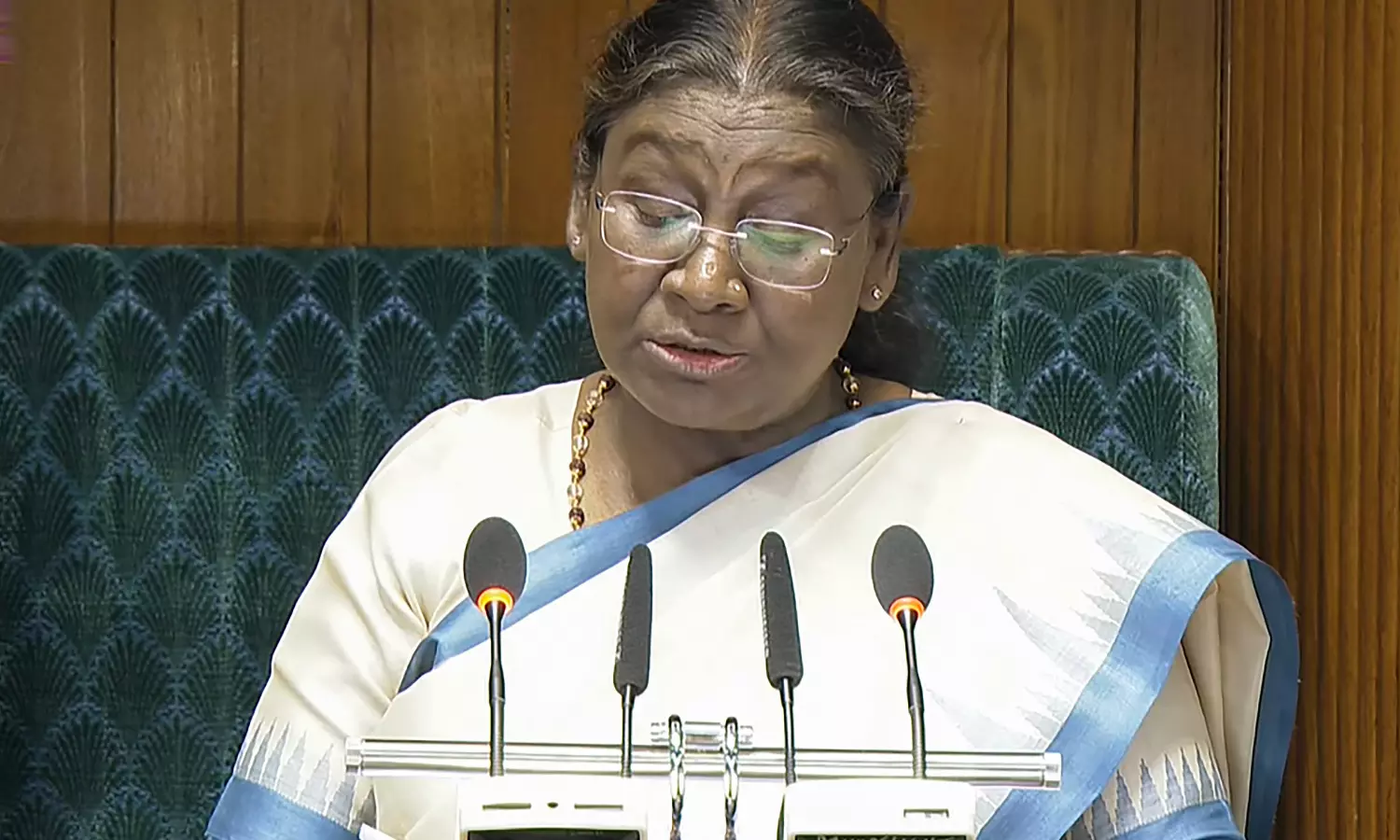 In her nearly hour-long address, the President highlighted the government’s measures in a range of sectors, from economy, defence and farming to the empowerment of different sections of society and laid down its priorities in its third term, amid sporadic protests from the Opposition benches when she referred to issues such as paper leaks and matters related to the Northeast region.