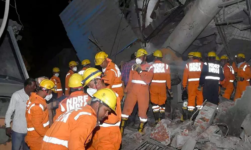 Sources said repair work was being taken up in the factory when a pillar gave way. Two teams of National Disaster Response Force and other teams of police, fire brigade and factories departments, the Municipal Corporation were undertaking the rescue operation.