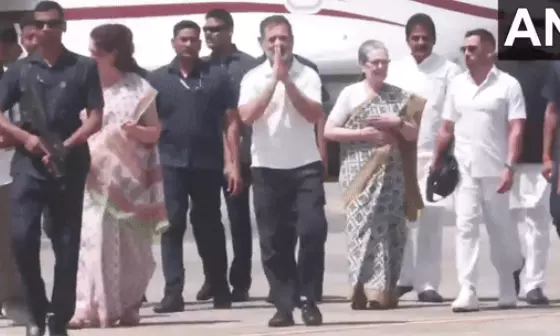 Flanked by Sonia, Priyanka, Cong top guns; Rahul lands in UP ahead of filing nomination from Raebareli