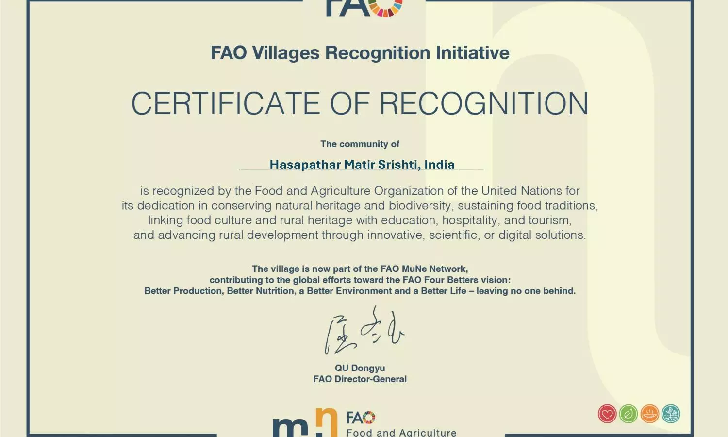 She also stated, “I am further happy to inform that United Nations (FAO) has also recognised West Bengal’s famed Gobindbhog, Tulaipianji and Kanakchur Aromatic rice as food & culture heritage. I am sharing Certificates of Recognition received from the Director General of FAO of United Nations. UN-FAO recognition of these initiatives is a prestigious honour for globally recognised good works to conserve natural heritage, bio-diversity and food & culture heritage. We dedicate this recognition to our entire rural community, especially the farmers of Bengal.”