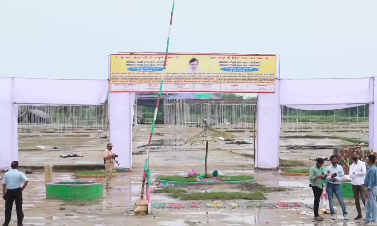people were present in the satsang pandal. The preacher reached the venue at about 12.30 pm and the programme went on for an hour… At about 1.40 pm, the godman came out of the pandal to go towards Etah via national highway 91. As soon as he left, his followers started running towards him for a 'darshan' and to collect soil from around his feet.