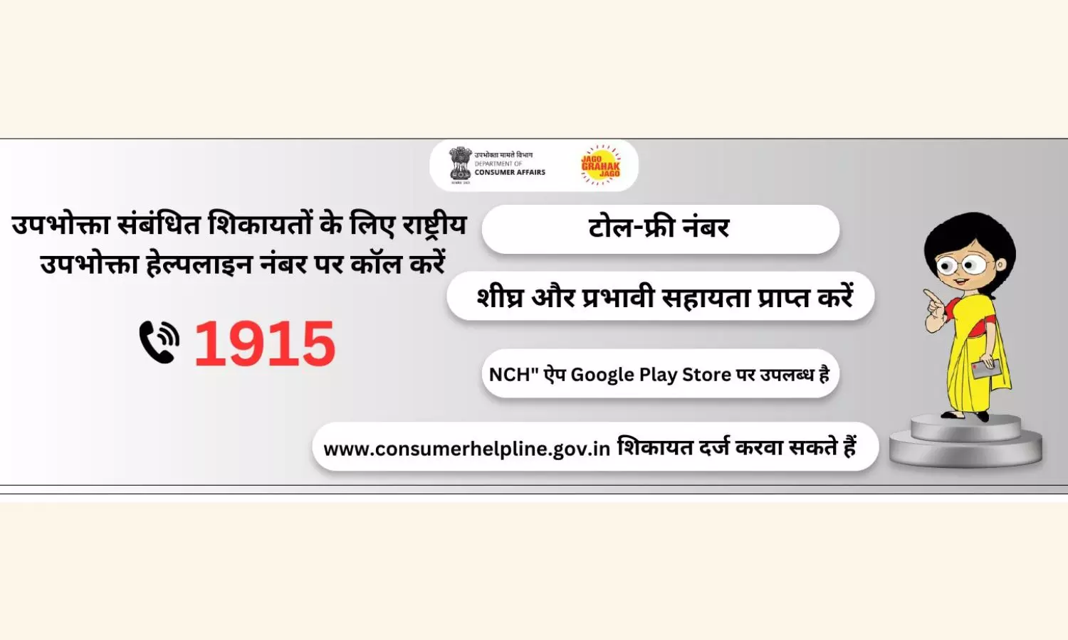 The helpline receives complaints related to a broad spectrum of consumer related issues like E-Commerce, Banking, Electronic Products, Consumer Durables, Digital Payment, Telecom, Legal, Retail Outlets, Broadband & Internet and Agency Services.