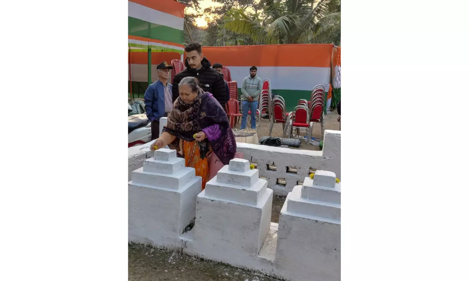 On Sunday, Maili Chhetri (74) from Dalmore Tea Estate in Alipurduar laid a wreath at the memorial of her husband, Tek Bahadur Chhetri, who had served as a jawan in the Indian Army, at Krishnaganj in Nadia a day before Vijay Diwas celebration that marks the war victory.