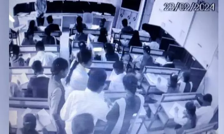 The invigilator at the Government High School in R Udayagiri was seen not taking any action despite students making disturbances in the exam hall in a bid to take advantage of each other.