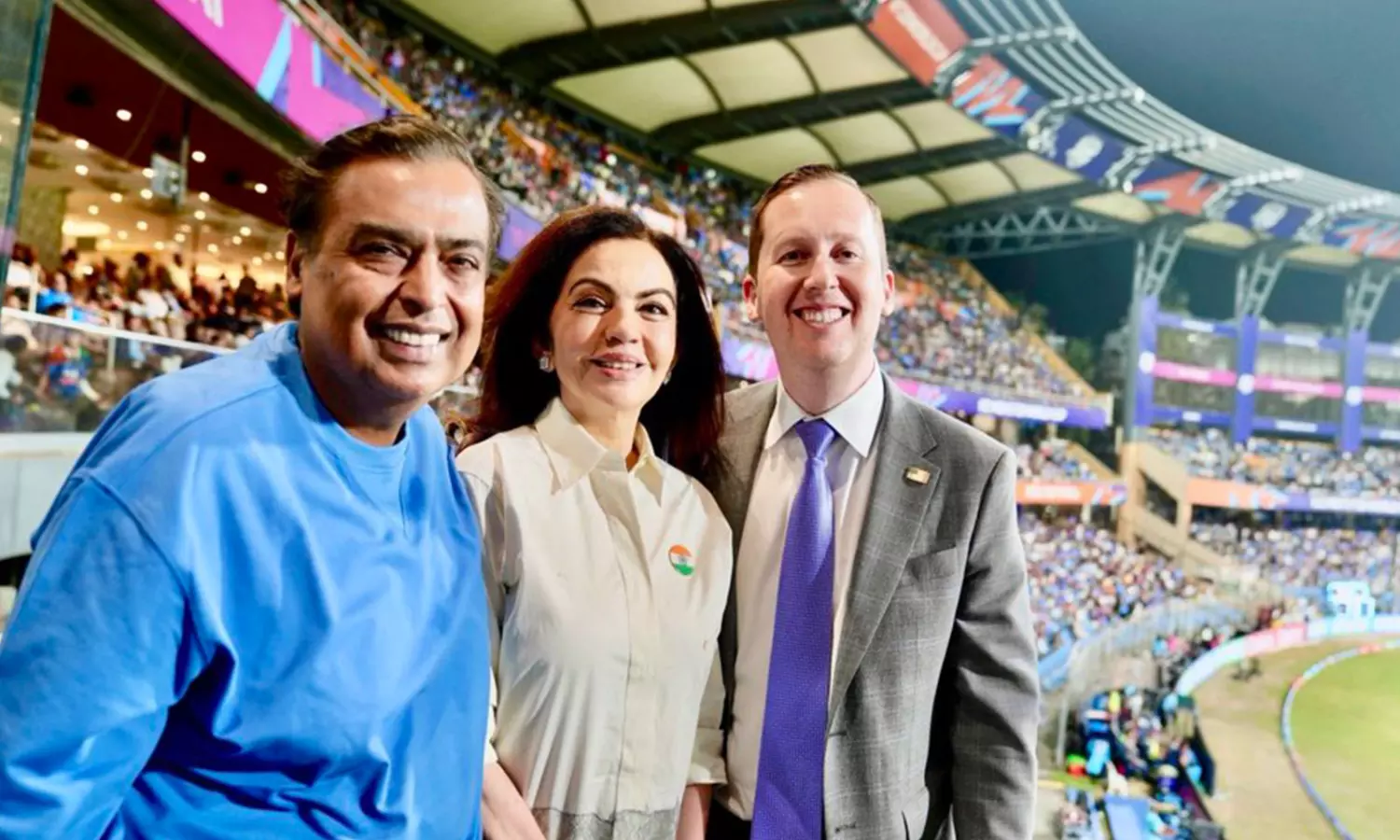 On X, Ambassador Gor wrote, "Great to see my friends Mukesh and Nita Ambani on the sidelines of the #T20WorldCup match between @USACricket and India."