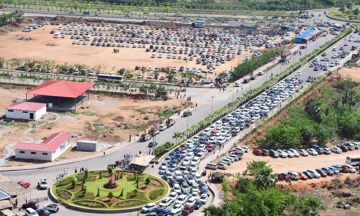 As the parking area on the hill shrine was packed, many personal vehicles, cars, and others were forced to wait in a kilometer-long queue on the road. Police swung into action and cleared the traffic jam.