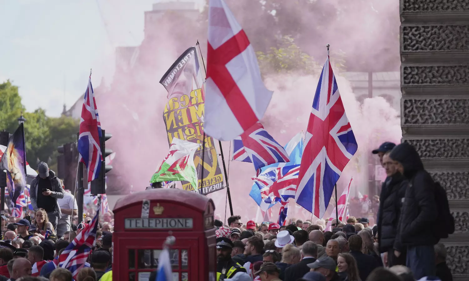 The march, organised by far-right activist Tommy Robinson under the banner “Unite the Kingdom”, called for tighter controls on migration