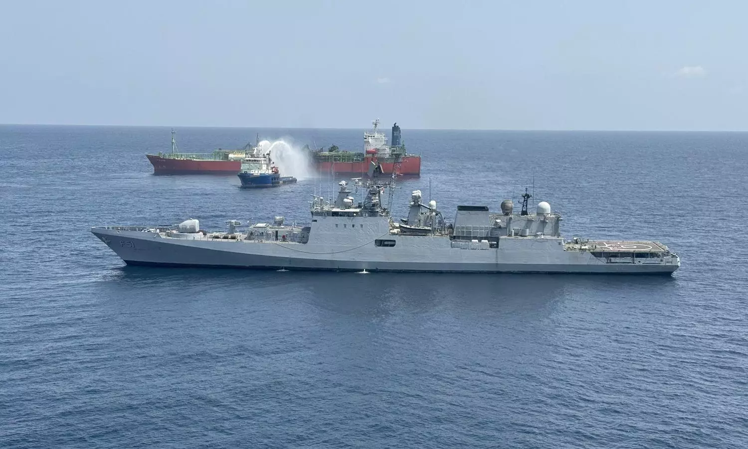 INS Trikand Carries Out Firefighting Operation off Djibouti Coast