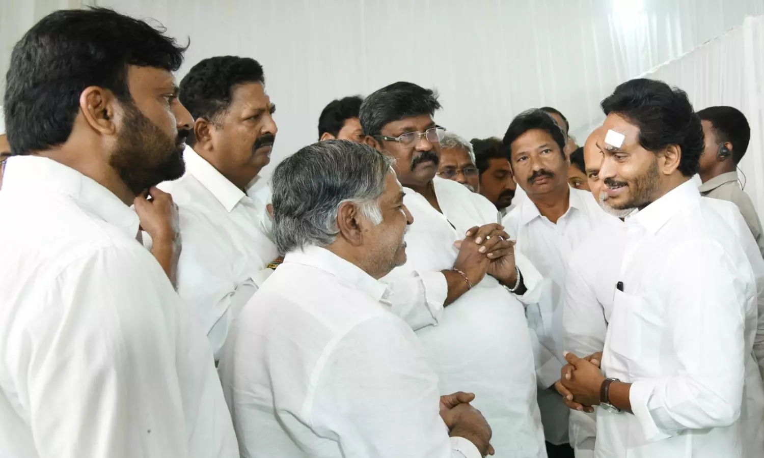 On Saturday night, when the CM’s bus tour – ‘Memantha Siddam (We are ready)’ – was passing through Vijayawada and reached the Singhnagar area, stones were pelted at Jagan, who was standing atop the bus. The incident occurred near the Vivekananda School, and Vijayawada West MLA Vellampalli Srinivas Rao, who was standing beside the CM, was also injured.
