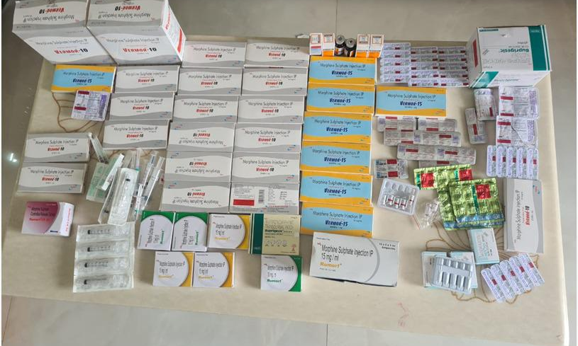 During a raid at the addict's residence in Sainikpuri, officials discovered a significant quantity of narcotics and psychotropic drugs like morphine injections, controlled release tablets and other potent substances.