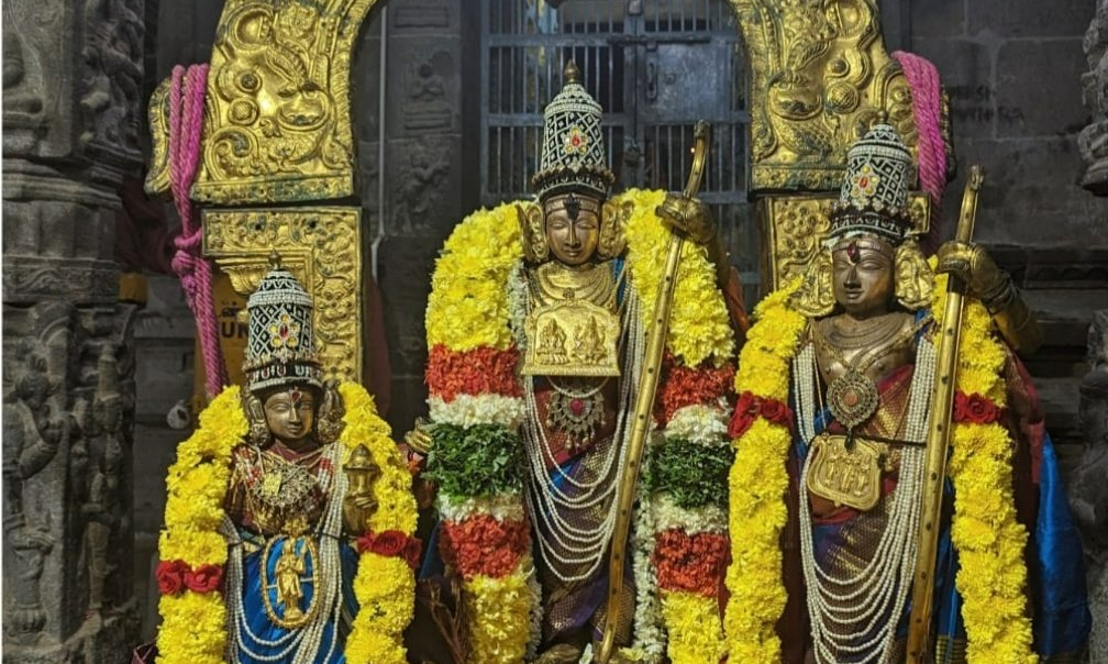 Priests performed Snapana Tirumanjanam for deities of Soma Skanda Murthy and Kamakshi Devi at the temple in the afternoon.