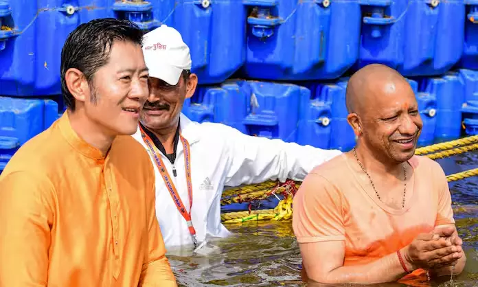 Wangchuk and Adityanath were accompanied by Uttar Pradesh ministers Swatantra Dev Singh and Nand Gopal Gupta during the dip along with newly-made Mahamandaleshwar Santosh Das ji Maharaj also known as Satua Baba, according to pictures shared by the state government. The Bhutanese King landed in Lucknow on Monday and was welcomed with cultural performances by artistes.