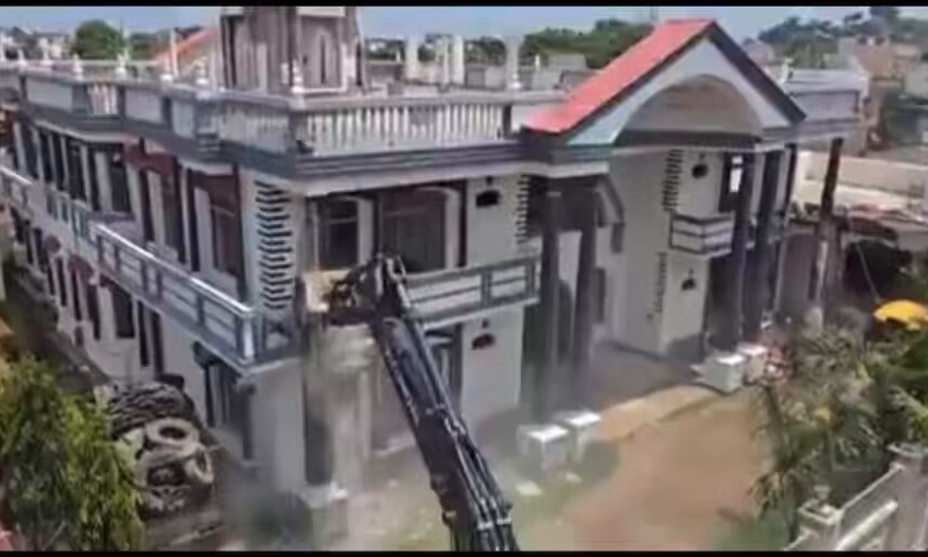 Bhopal: The palatial bungalow of the key accused in Wednesday's attack on a police station at district headquarters of Chhatarpur in Madhya Pradesh was on Thursday bulldozed by the local administration.