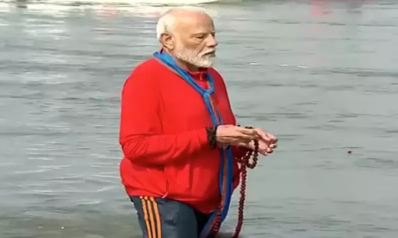 On the way, he acknowledged the greetings of crowds that had lined up on both sides of the riverbanks to catch a glimpse of him. After the holy dip, the prime minister performed rituals, including an 'aarti' as he got on board a floater, a specially built makeshift platform on the river.