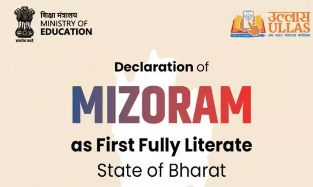 In a landmark achievement, Mizoram has become the first fully literate state in India. The official announcement was made during a state-level function at the Mizoram University auditorium in Tanhril, in the presence of Union Minister of State for Education Jayant Chaudhary.
