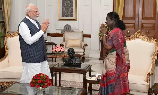 Prime Minister Narendra Modi called on President Droupadi Murmu on Saturday at the Rashtrapati Bhavan here.Her office shared a picture of the meeting in a post on X. "Prime Minister Shri @narendramodi called on President Droupadi Murmu at Rashtrapati Bhavan," the President's office said.