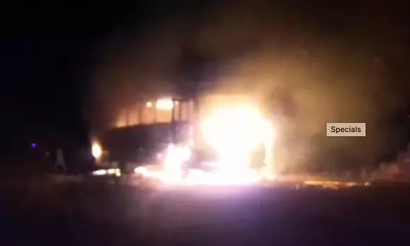 Bhopal: A bus carrying polling staff and Electronic Voting Machines (EVMs) late on Tuesday night caught fire near Sonora Gaula village under Saikheda police station in Betul district.