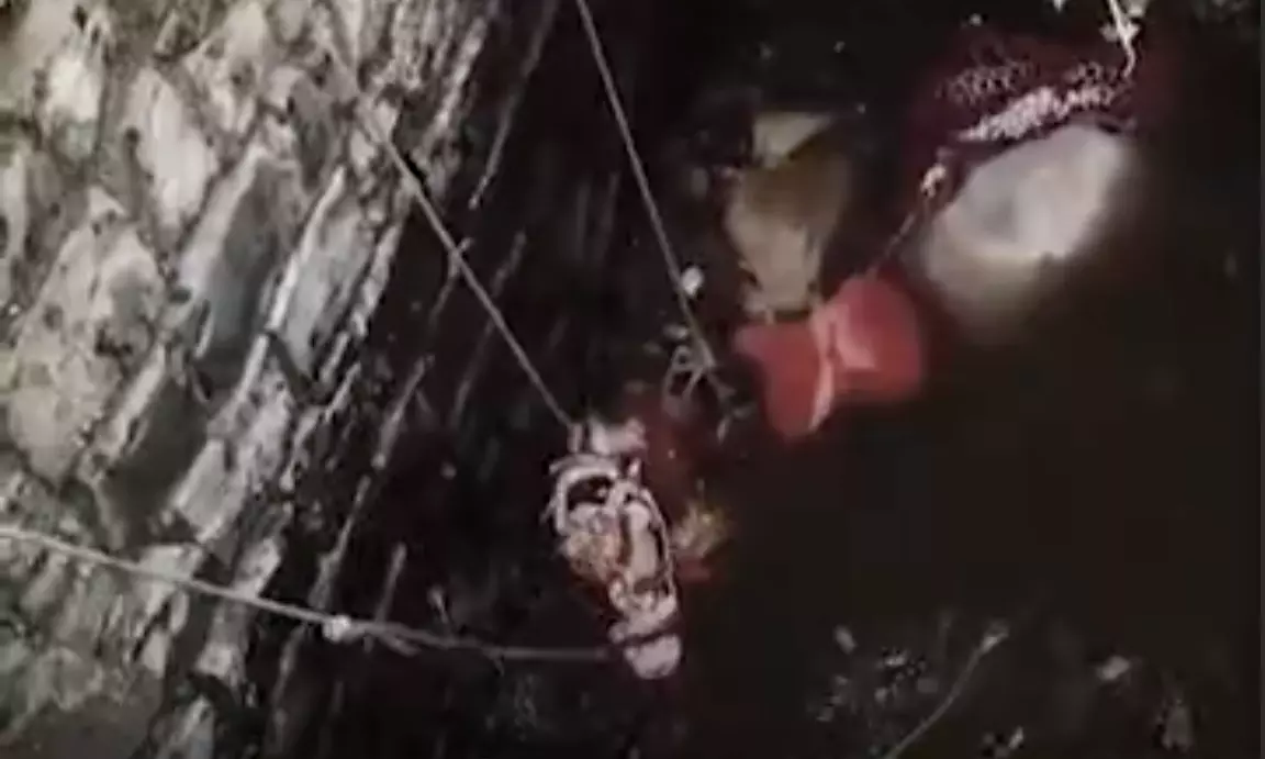 Later, the local villagers came to the rescue of the drowning horse and saved the animal by pulling it out of the well with the help of ropes.