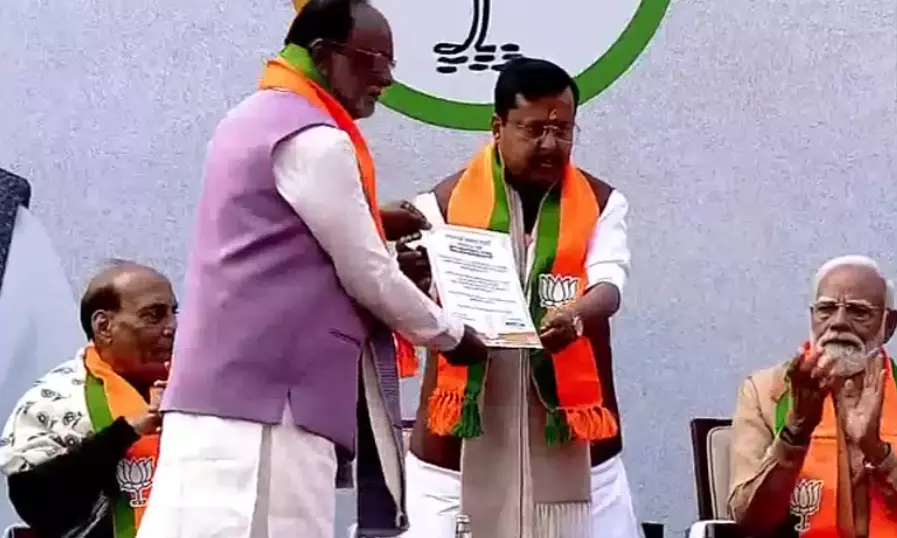 K Laxman, Returning Officer for BJP organisational elections, hands over certificate of election to Nitin Nabin.