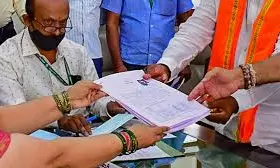 Kasargod NDA candidate M L Ashwini handed over her nomination papers to Kasargod Collector and district District returning officer Inbasekar. She was accompanied by senior leaders of BJP and NDA.