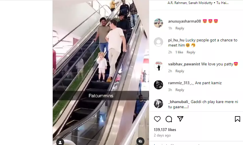 A reel shared on Instagram by @crazzyriderr shows the SRH Captain on a escalator with his young son at a popular mall in the city. He can be seen interacting with fans on the video.