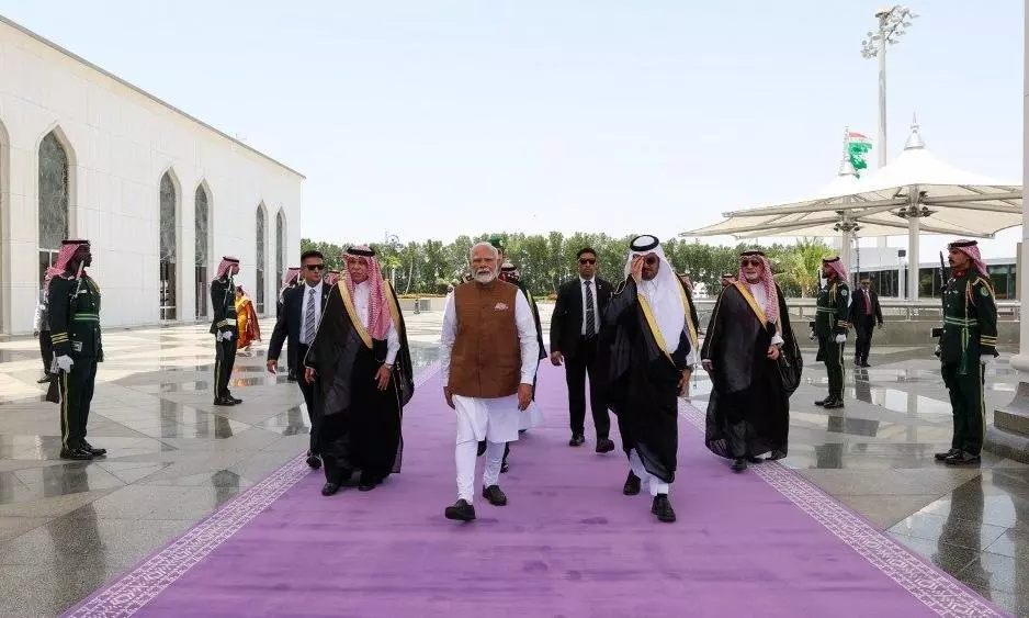 As a special gesture, the Prime Minister's aircraft was escorted by F15s of the Royal Saudi Air Force in the Saudi airspace. The foreign minister said Mr Modi described Saudi Arabia as “a trusted friend and strategic ally”, emphasising the significant expansion of bilateral relations since the creation of the bilateral Strategic Partnership Council in 2019.