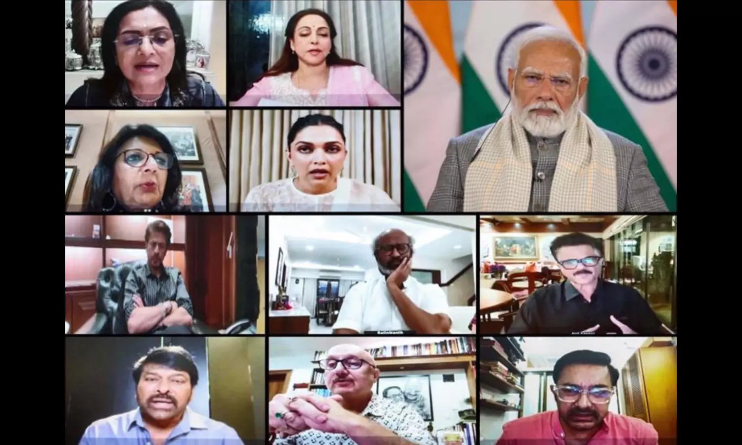 Prime Minister Narendra Modi held a virtual interaction on Friday evening with influential global and Indian leaders at the WAVES Summit Advisory Board Meet. The meeting included a stellar lineup of tech giants, business moguls, film industry icons, and creative visionaries such as Sundar Pichai, Satya Nadella, Mukesh Ambani, Anand Mahindra, Amitabh Bachchan, Shahrukh Khan, Chiranjeevi, Mohanlal, Rajnikanth, Aamir Khan, AR Rahman, Akshay Kumar, Ektaa R Kapoor, Ranbir Kapoor, and Deepika Padukone, among others.